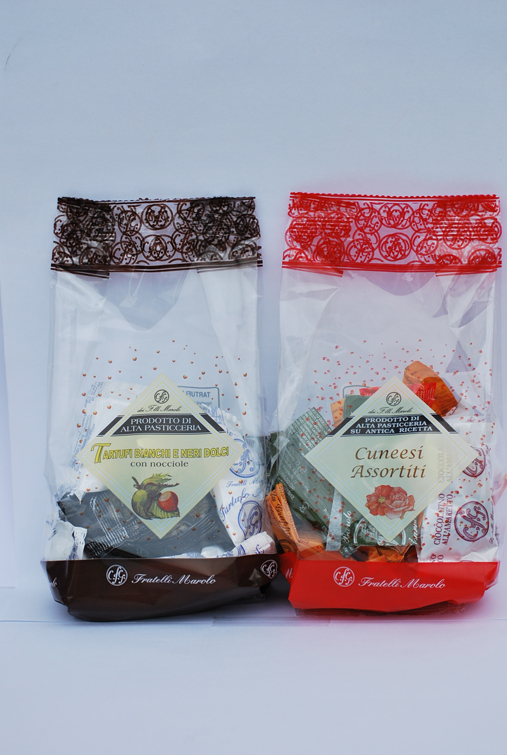 Ogni confezione contiene cioccolatini albesi assortiti con grammatura da 400g. e 800g.